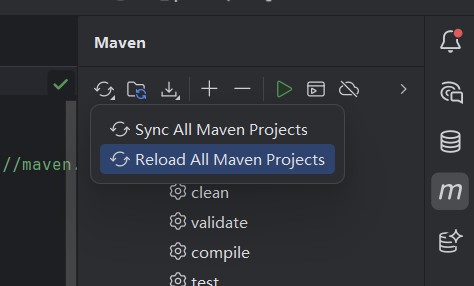 如图所示,我们刚开始尝试添加一个依赖的时候,肯定会出现上面这样的报红的情况。这是因为maven检查了本地仓库之后发现不存在9.2.0这个版本的数据库依赖。此时我们可以点击刷新maven ,让maven下载依赖: