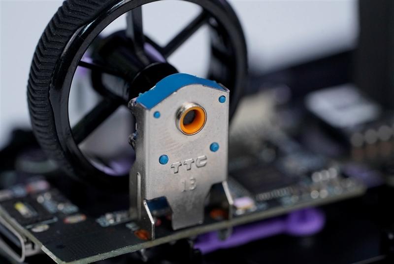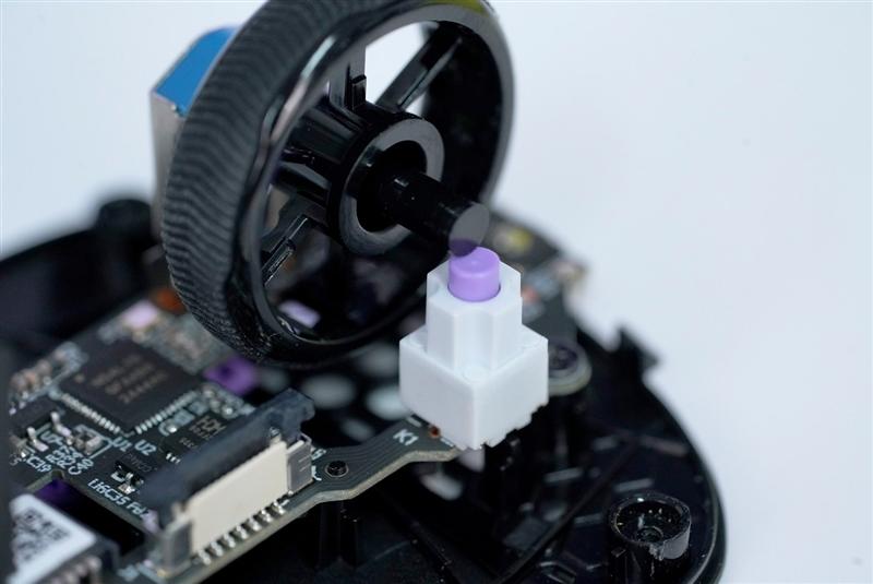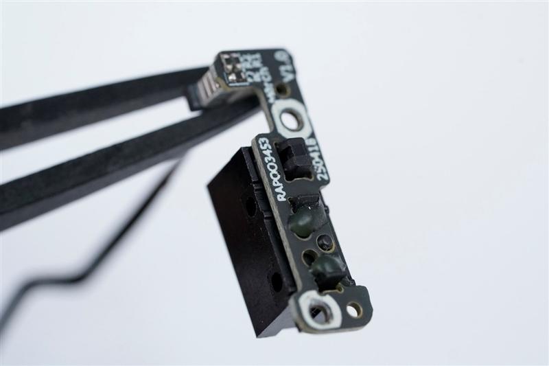 最关键的光学部分其实在安装微动的独立小板上,微动实际上只负责点击反馈和光路开关,结构简单可靠性高。