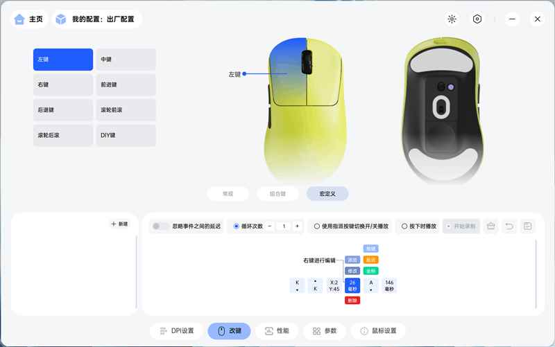 在按键设置页面,雷柏vt3s max鼠标有8个键可以进行自定义,每个键都可以设置独立功能或映射键盘组合键,游戏玩家常用的宏功能也有提供。