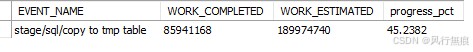 -- 查看正在进行的alter table进度 select event_name,work_completed,work_estimated,round(100 * work_completed / work_estimated, 2) as pct_complete from performance_schema.events_stages_current where event_name like 'stage/innodb/alter%';