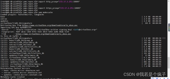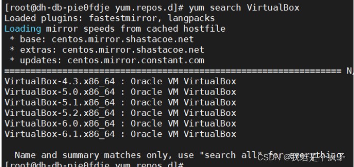 登录服务器后台,在 /etc/yum.repos.d/ 目录下新建 virtualbox.repo 文件,将上一步查看的repo文件内容复制到里面