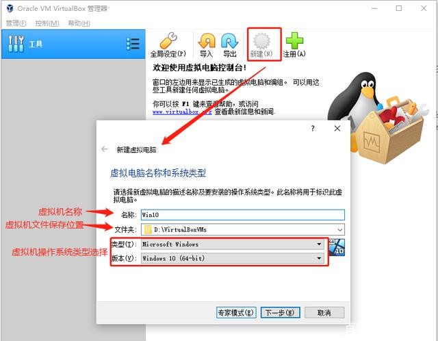 打开linux virtualbox ,点击新建,创建虚拟机