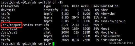 如下图一,逻辑卷一般是 /dev/mapper/ 开头的,也可以输入vgdisplay查看逻辑卷信息。