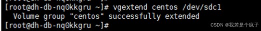 把物理卷扩展到原有的卷组里,上面我们查到原有卷组为 centos 。如图为扩展成功。