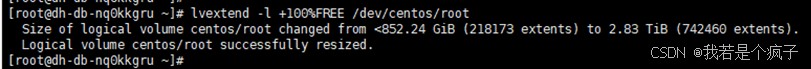 lvextend -l +100g /dev/centos/root (扩展固定空间的大小) lvextend -l +100%free /dev/centos/root (扩展所有空间)