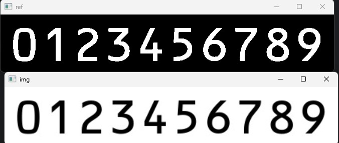digits = {} # 存储数字模板:key=数字索引,value=标准化后的数字图像