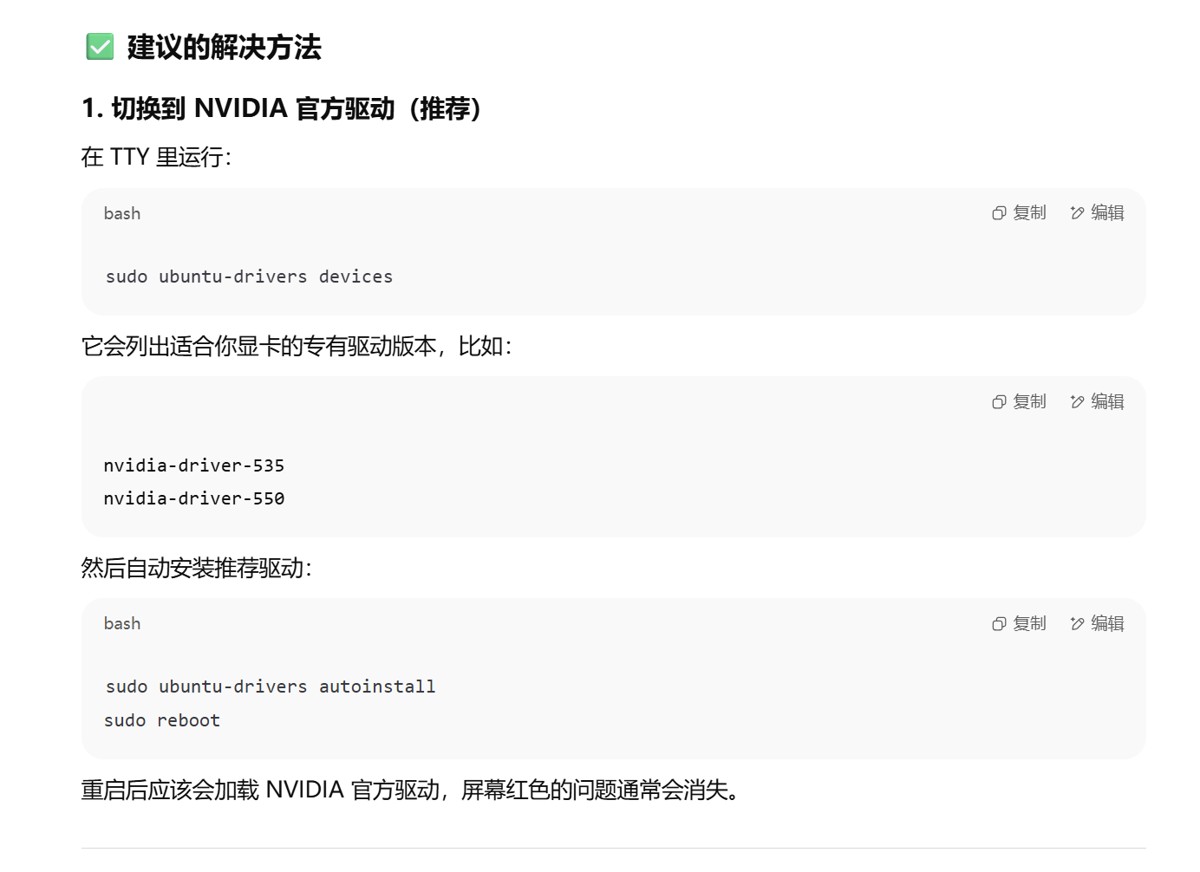 注意:不要再用 .run 文件安装驱动,除非你非常清楚它在做什么。系统自带驱动更容易维护、更稳定。