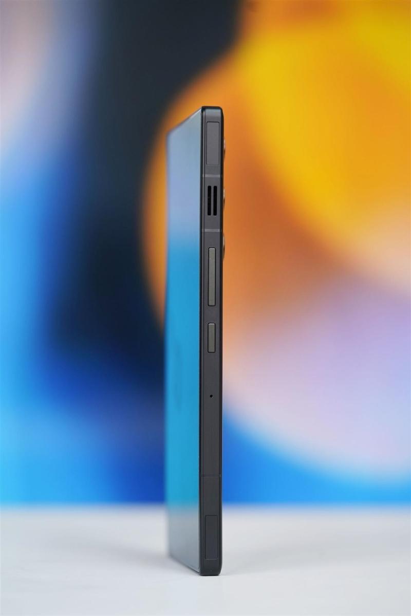 来到正面,作为全行业独家的真全面屏,这块屏幕无论点亮多少次都惊艳笔者。这块屏幕的屏占比高达95.1%,同时屏幕边框只有极窄的1.25mm,放眼望去就是无限的沉浸感和视觉震撼。