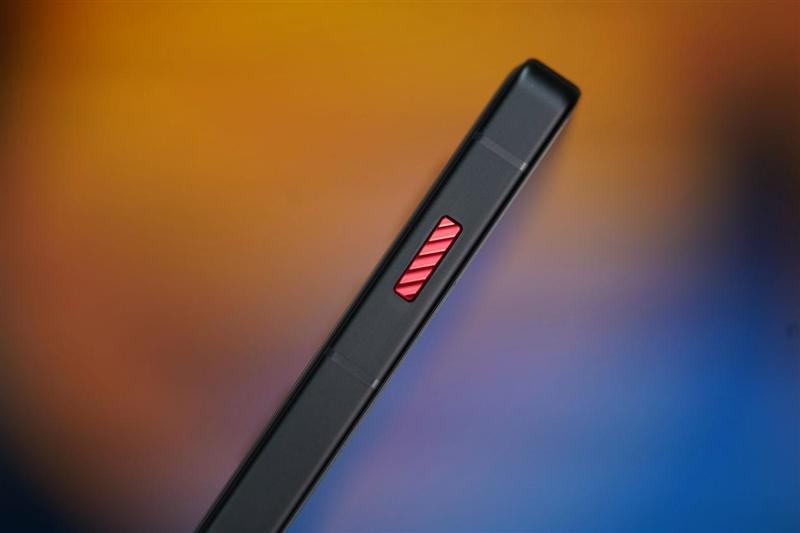 红魔还在侧边上下加入了触摸肩键,配合线性马达的震感调校,让它在游戏中的触感极佳。这块肩键在硬件设计上有520hz的行业最快触发速率,不仅响应速度极快,还有超大的感应面积于独家的防手汗设计,确保在每一次的对战中都能精准触发操作。