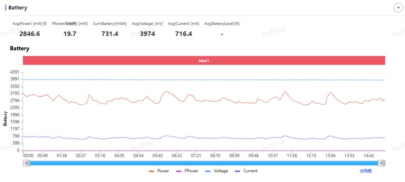 更令人惊讶的是手机的能耗表现,游戏的平均功耗为2.84w,每帧能耗低到了20mw以内。