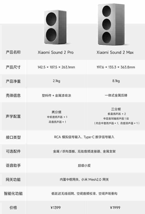 小米最新推出的sound 2 pro音箱今天正式开售,定价1399元。