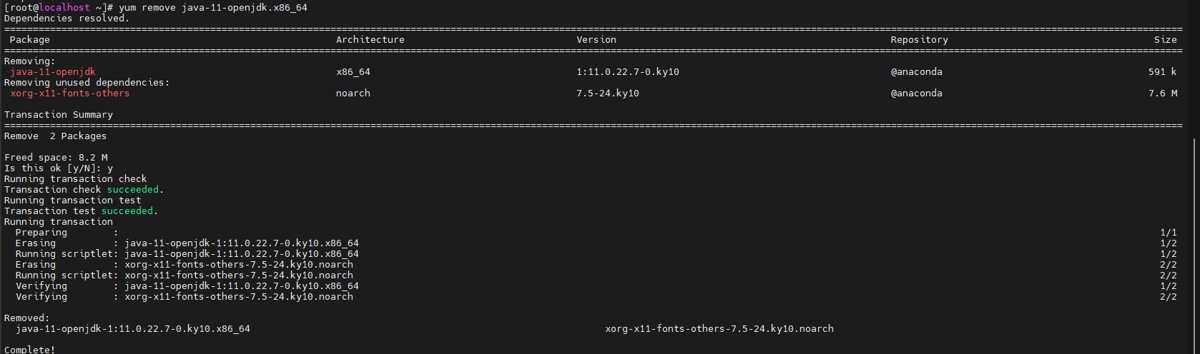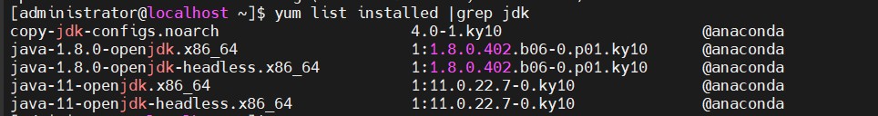 (1)麒麟系统默认自带openjdk1.8和openjdk11需要先卸载自带jdk