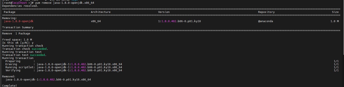 #删除默认安装的所有jdk yum remove java-1.8.0-openjdk.x86_64 yum remove java-1.8.0-openjdk-headless.x86_64 yum remove java-11-openjdk.x86_64 yum remove java-11-openjdk-headless.x86_64