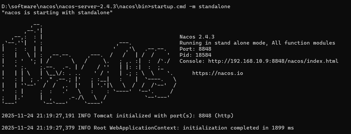 切记!该窗口不可关闭,关闭后nacos程序也会被杀死。