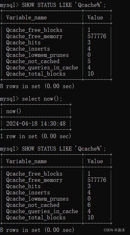 | qcache_inserts | 添加到查询缓存的查询数 |