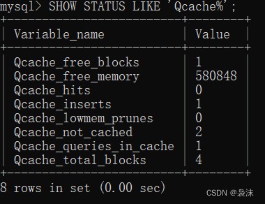 | qcache_free_memory | 查询缓存的可用内存量 |