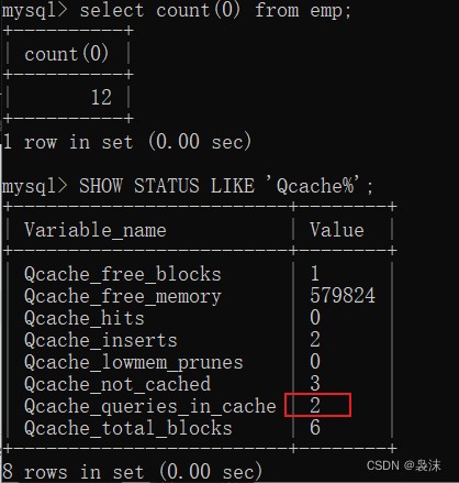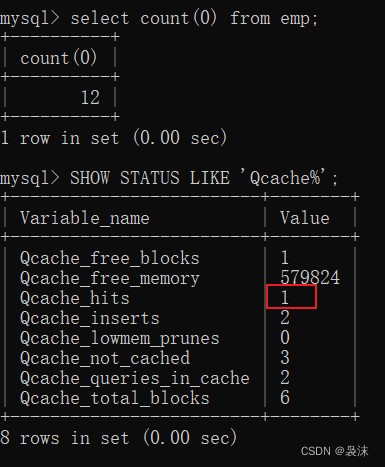 但是命中次数加一,说明,该查询是从缓存中捞取的数据: