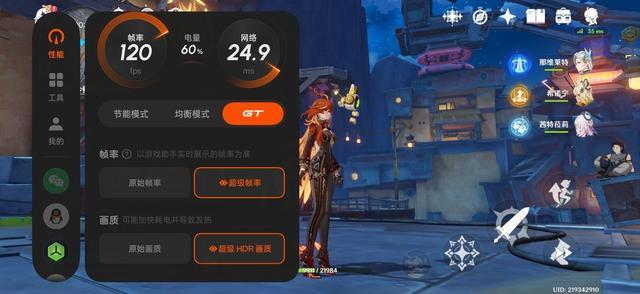 针对《原神》这类重度负载游戏,开启高画质+60帧设置,在场景复杂、渲染压力大的新版本那夏镇跑图测试中,perfdog测试的半小时平均帧率稳定在60fps满帧,帧率曲线几乎无波动,平均功耗不足4.2w;同时真我neo8还支持《原神》120hz超帧+超画迸发技术,通过ai算法实现1.5k画质与120hz帧率双突破,画面细节与流畅度同步升级。