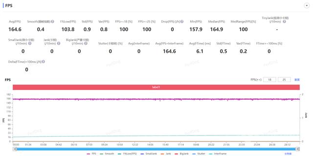 在《三角洲行动》中,真我neo8凭借165hz高刷优势,满帧运行原生165fps模式,perfdog测试显示平均帧率164.4fps,视觉效果细腻流畅,平均功耗仅4w,长时间激战也无压力。