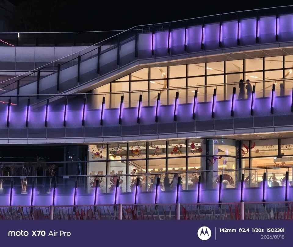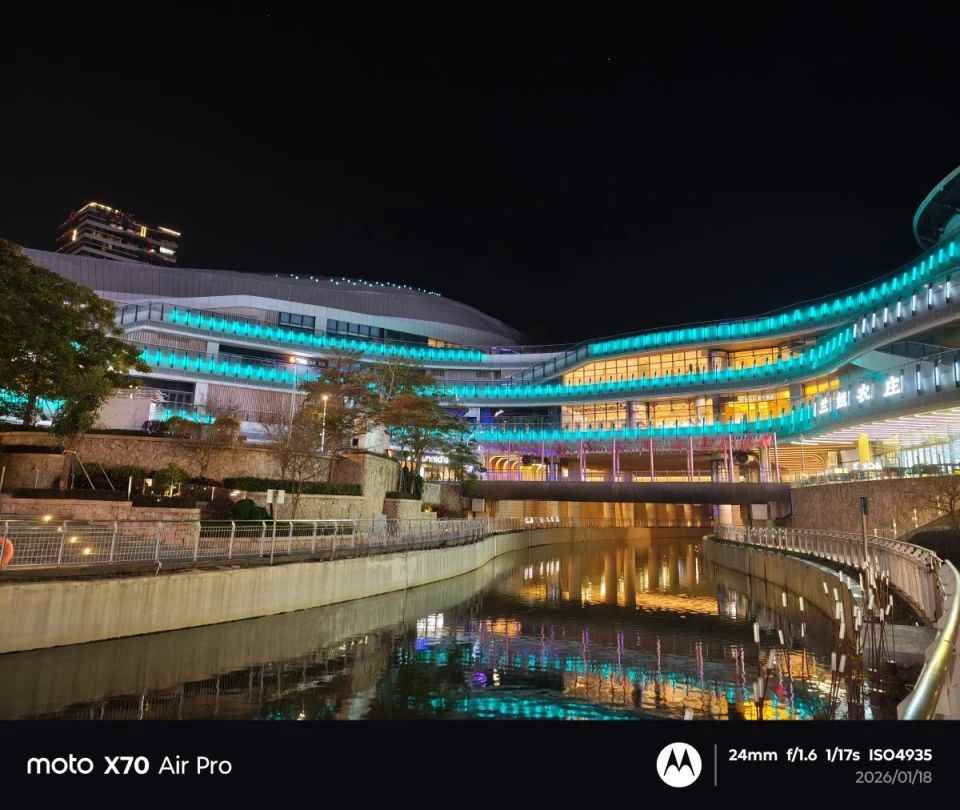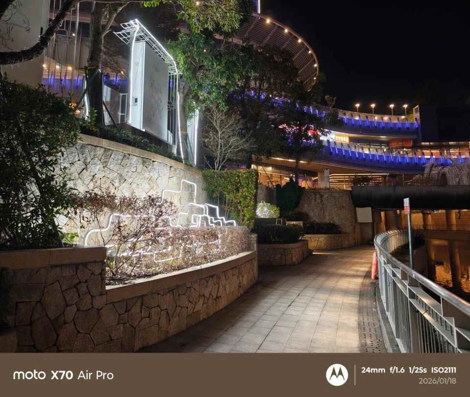 夜景拍摄是联想moto x70 air pro的另一大亮点,借助ai夜景降噪算法,即便在极低光环境下,也能拍出纯净度高、细节丰富的夜景照片,不会出现明显的噪点和涂抹感。