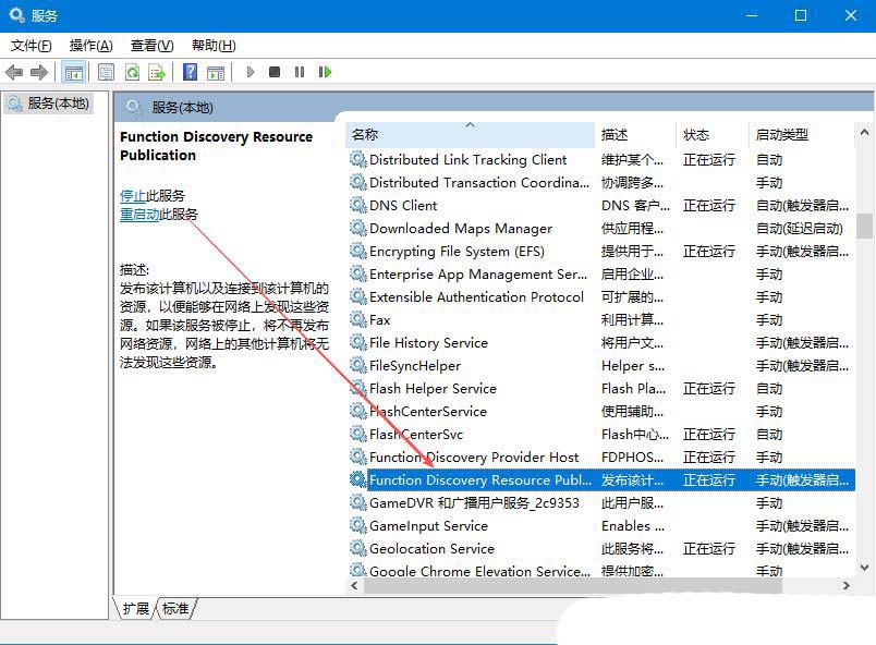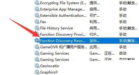 3、找到,并双击打开其中的 function discovery resource publication 服务;