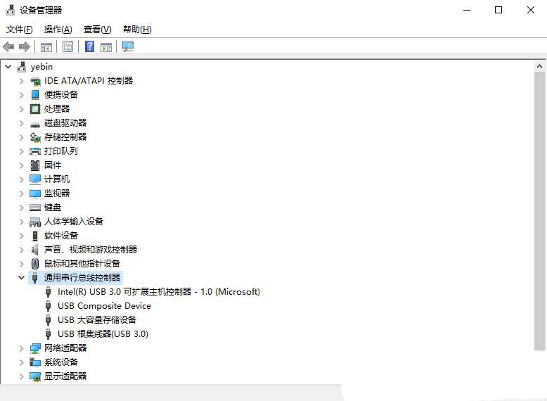 2、设备管理器窗口中,点击展开【通用串行总线控制器】;