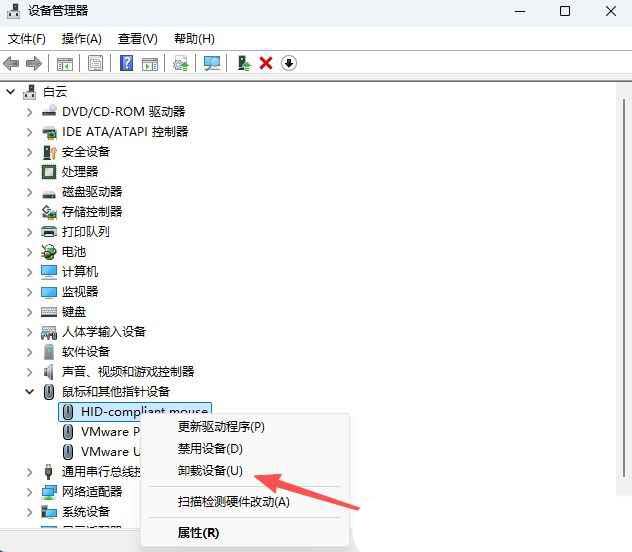 3、然后,卸载其中的“hid-compliant mouse”驱动即可。