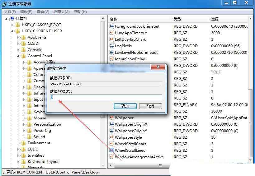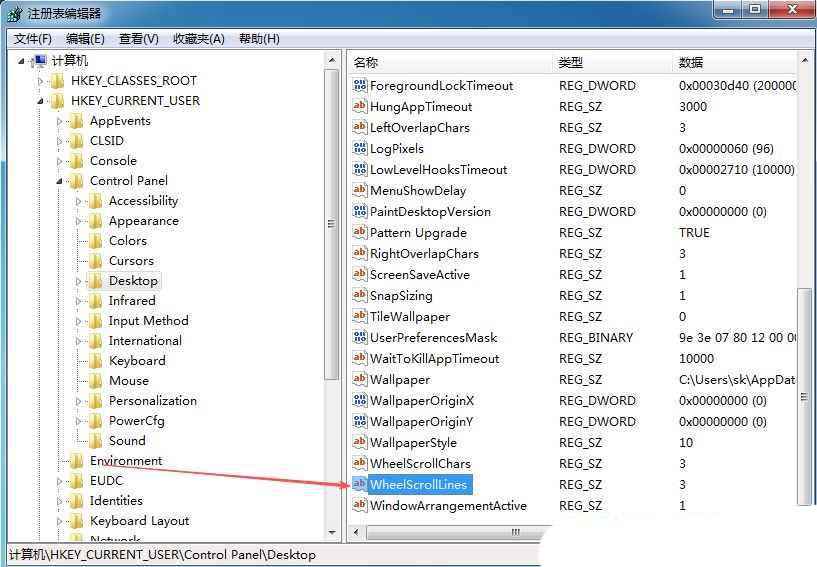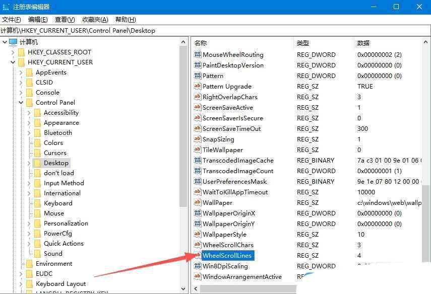 3、然后,找到并双击打开右侧的“wheelscrolllines”项。