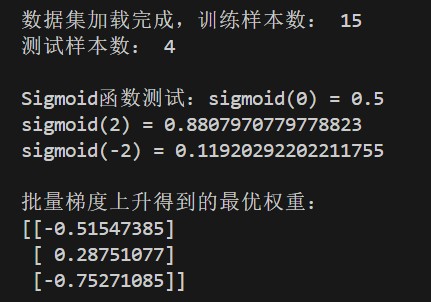 运行代码后,批量梯度上升得到的最优权重如下(与理论预期一致):