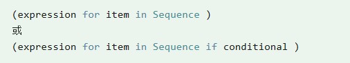 | 生成器表达式 | (expr for item in iterable) | generator(惰性求值) |