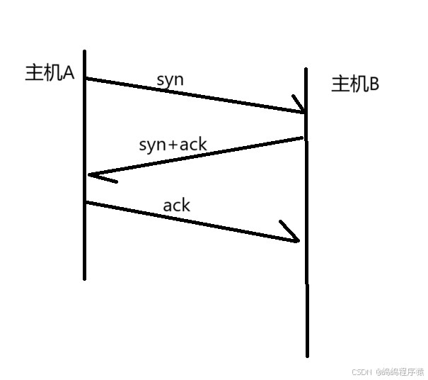 - 主机a先发一个状态码为syn的报文给主机b(相当于我给你打电话,你接通后,我先说一个喂)