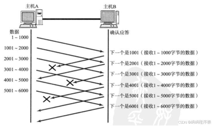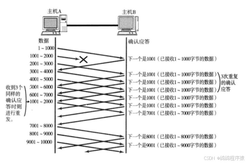 2.2. 如果发送端主机连续多次都收到了同样⼀个 “1001” 这样的应答, 就会将对应的数据 1001 - 2000 重新发送;