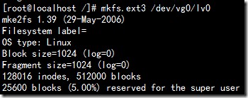 命令:lvreduce -l 500m /dev/vg0/lv0