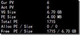 看看默认的pe大小为4m,pv个数为6个,vg的总大小为6.7.g