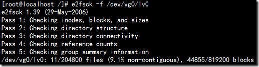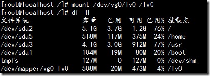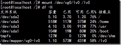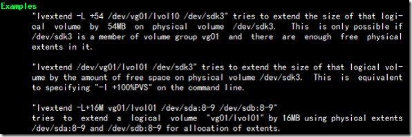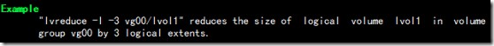 注释:逻辑卷可扩展同样也可缩小,但应在缩小lv之前首先减小文件系统,否则将可能导致数据丢失。