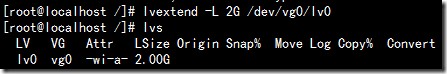 指定扩容后的尺寸: lvextend -l 2g /dev/vg0/lv0