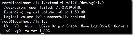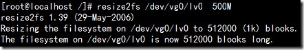 指定要增加的尺寸: lvextend -l +512m /dev/vg0/lv0
