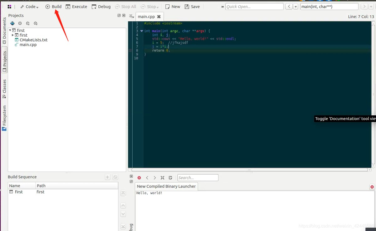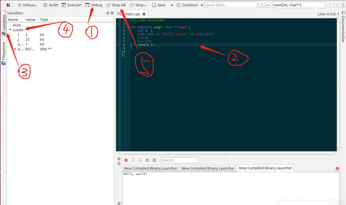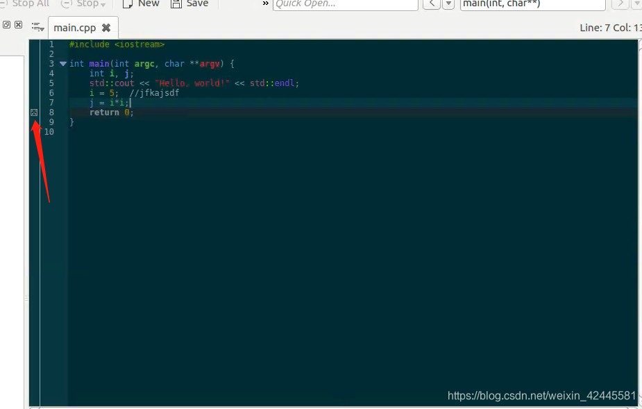 先将main.cpp改成如下,下面我们来debug变量 i 和 j 的值。