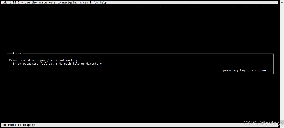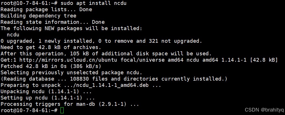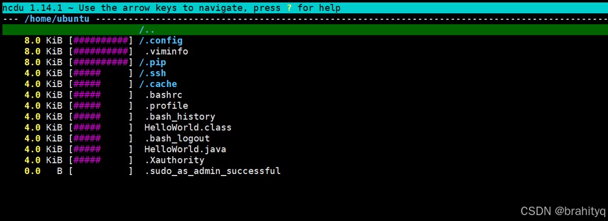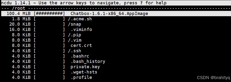 # debian/ubuntu sudo apt install ncdu # centos/rhel sudo yum install ncdu # macos (通过 homebrew) brew install ncdu
