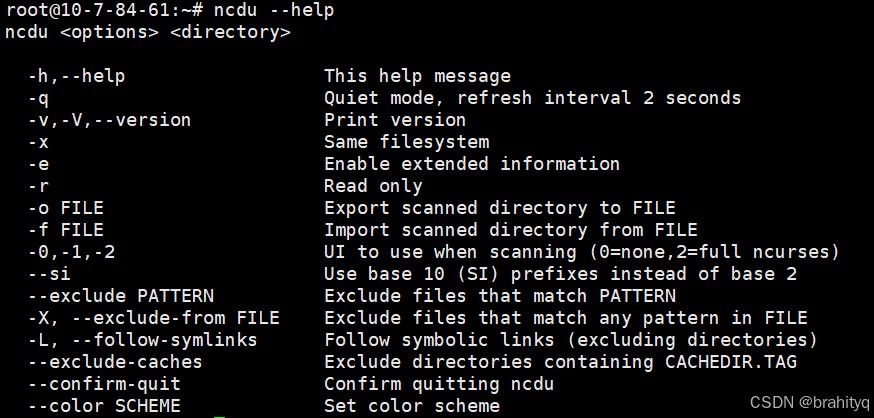 ncdu --help 获取对应的帮助信息
