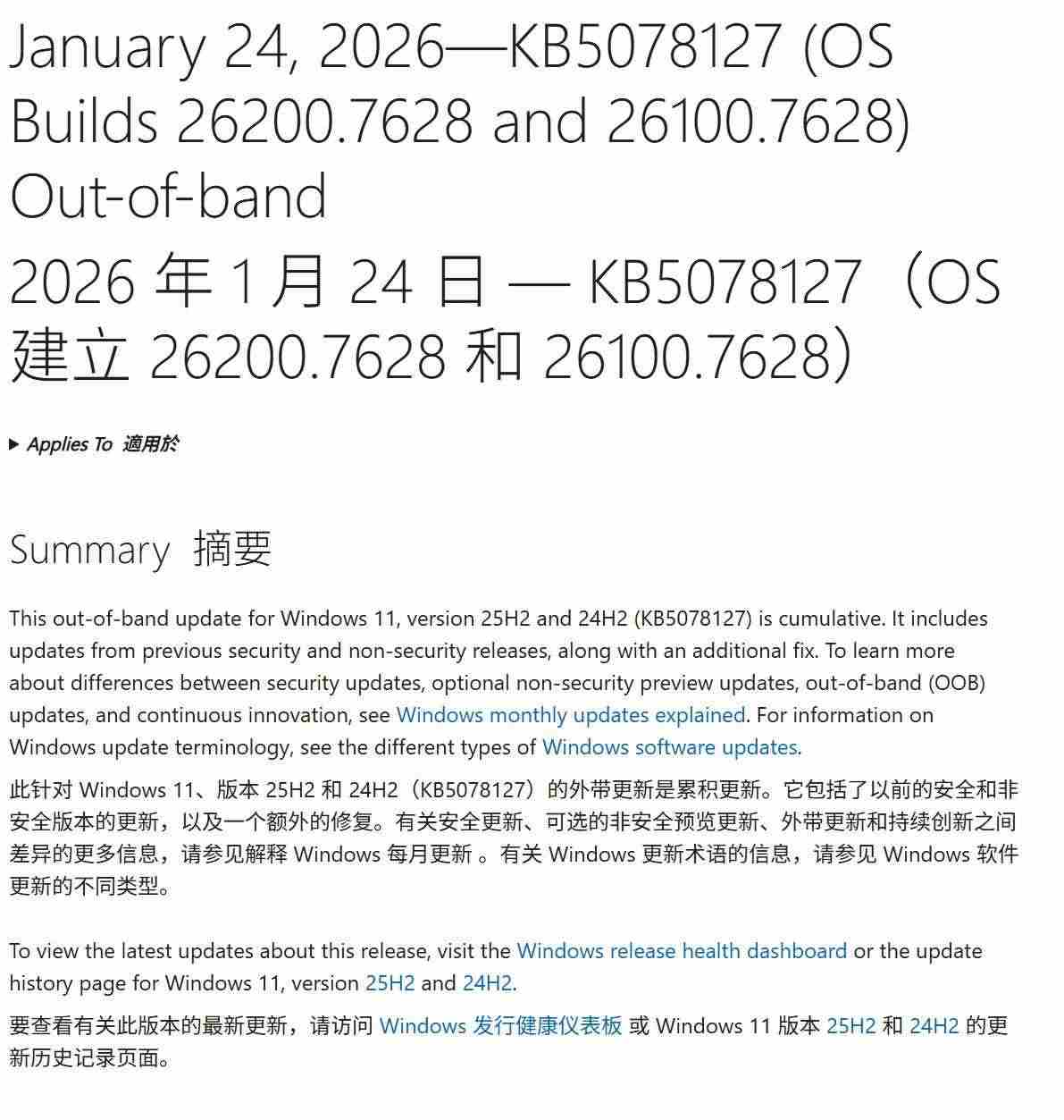 - windows 11 企业版 25h2 / 24h2(热补丁):kb5078167