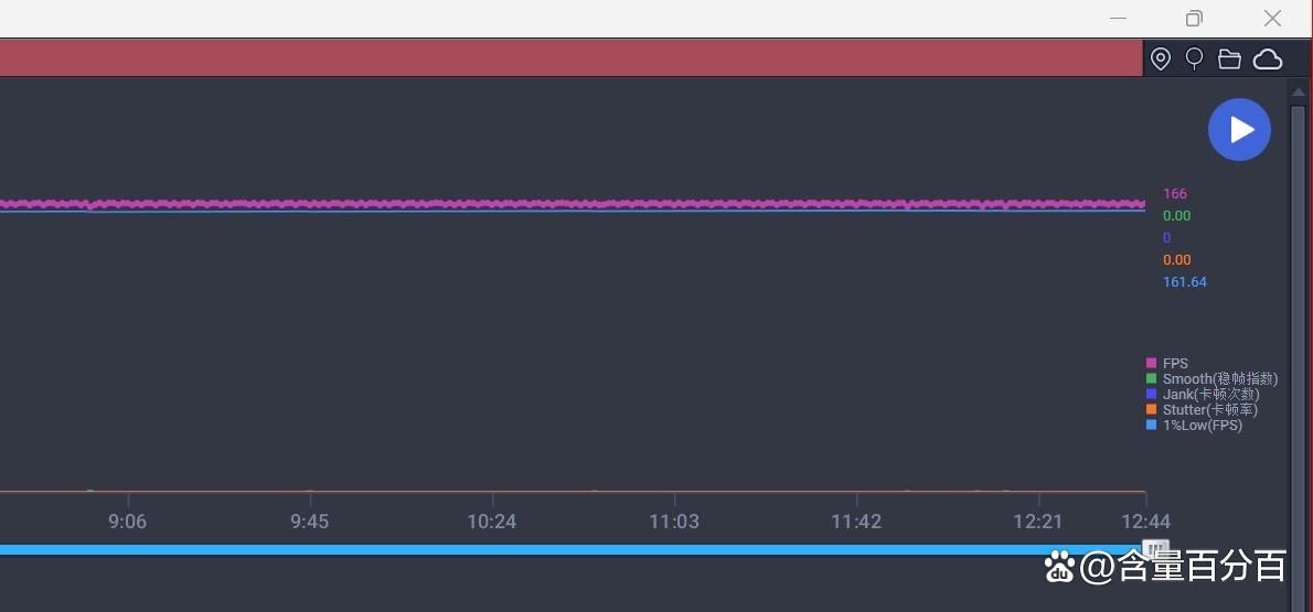 上图和下图是一加15在跑跑卡丁车下的帧率图,搭配的是perfdog。12分钟的游戏时长里面,帧率没有明显波动,可以说是非常平稳,最值得关注的是这个1%low帧都达到了161.64帧,都没有下到160帧,可以说游戏过程非常的丝滑。这里都不用拿iqoo 15进行测试对比,161.64帧的1%low帧都要比它的最高144帧高出不少。