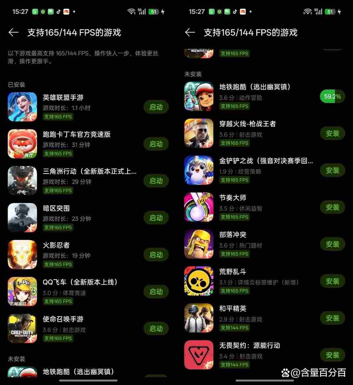 一加15除了支持原生165帧、适配原生165帧的游戏外,也已经适配了大量144帧手游,而且是还在不断的通过gpu渲染超帧165帧来适配更多手游,相对来说一加15在高帧率游戏方面会更有优势。