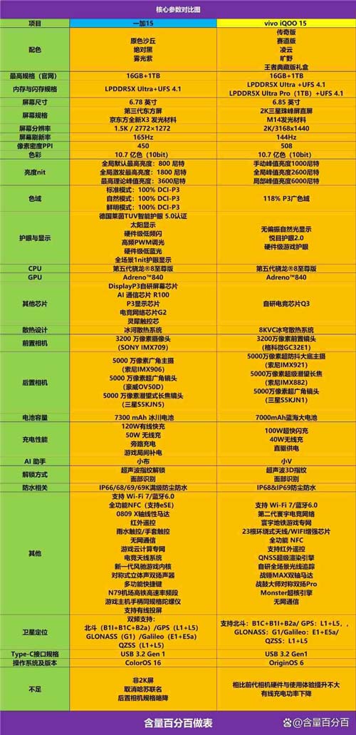 通过以上的对比分析,你还会纠结于选顶配版的一加15还是iqoo 15吗?我个人建议是,除非是你追求2k分辨率或是喜欢vivo系成像效果而选择iqoo 15,否则的话就直接选择一加15,不管是高刷、护眼体验、快充续航体验、防水等级还是综合游戏体验层面都要更好些。