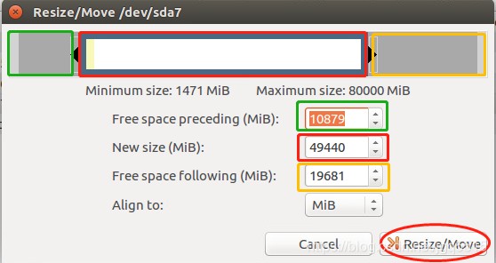 我就拿它来缩减空间,加到sda1中右键resize/move