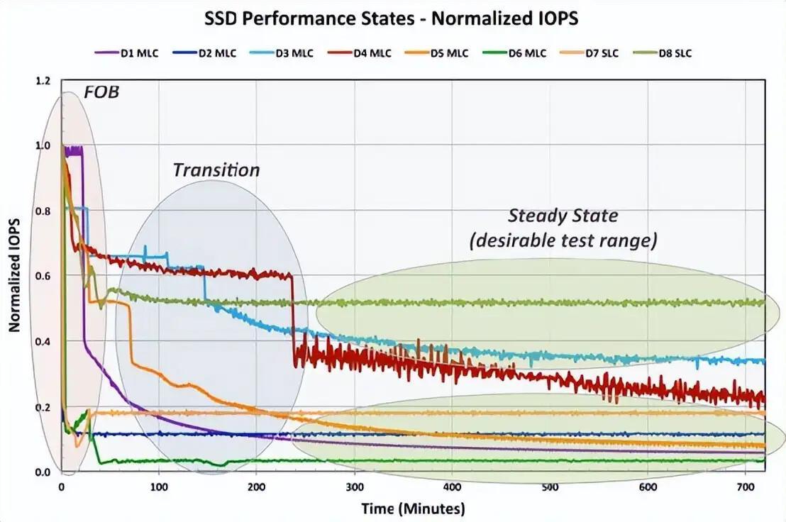 根据 snia pts 的定义,如果一个ssd能进入稳态,那这个最大值与最小值的差,不得超过平均值的 20%。