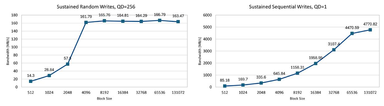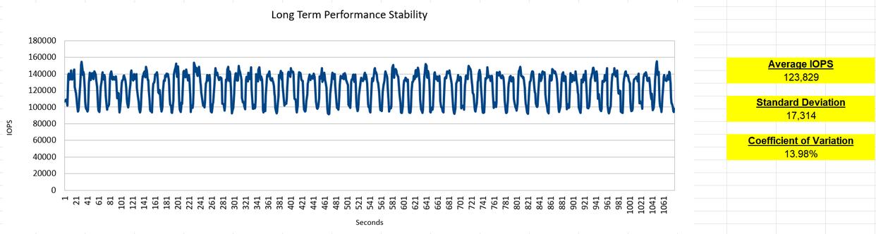 如果说刚才fob状态下的理论性能测试,代表的是一块ssd在理想工况下的性能上限,那steady state稳态中的性能,则代表ssd在极度脏盘、极度重负载场景下的性能下限。