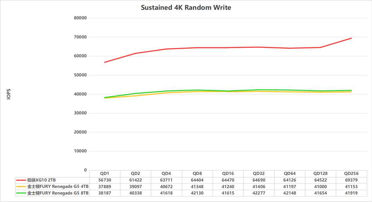 在4k稳态随机写入性能测试中,金士顿fury renegade g5 8tb的表现如下图所示: