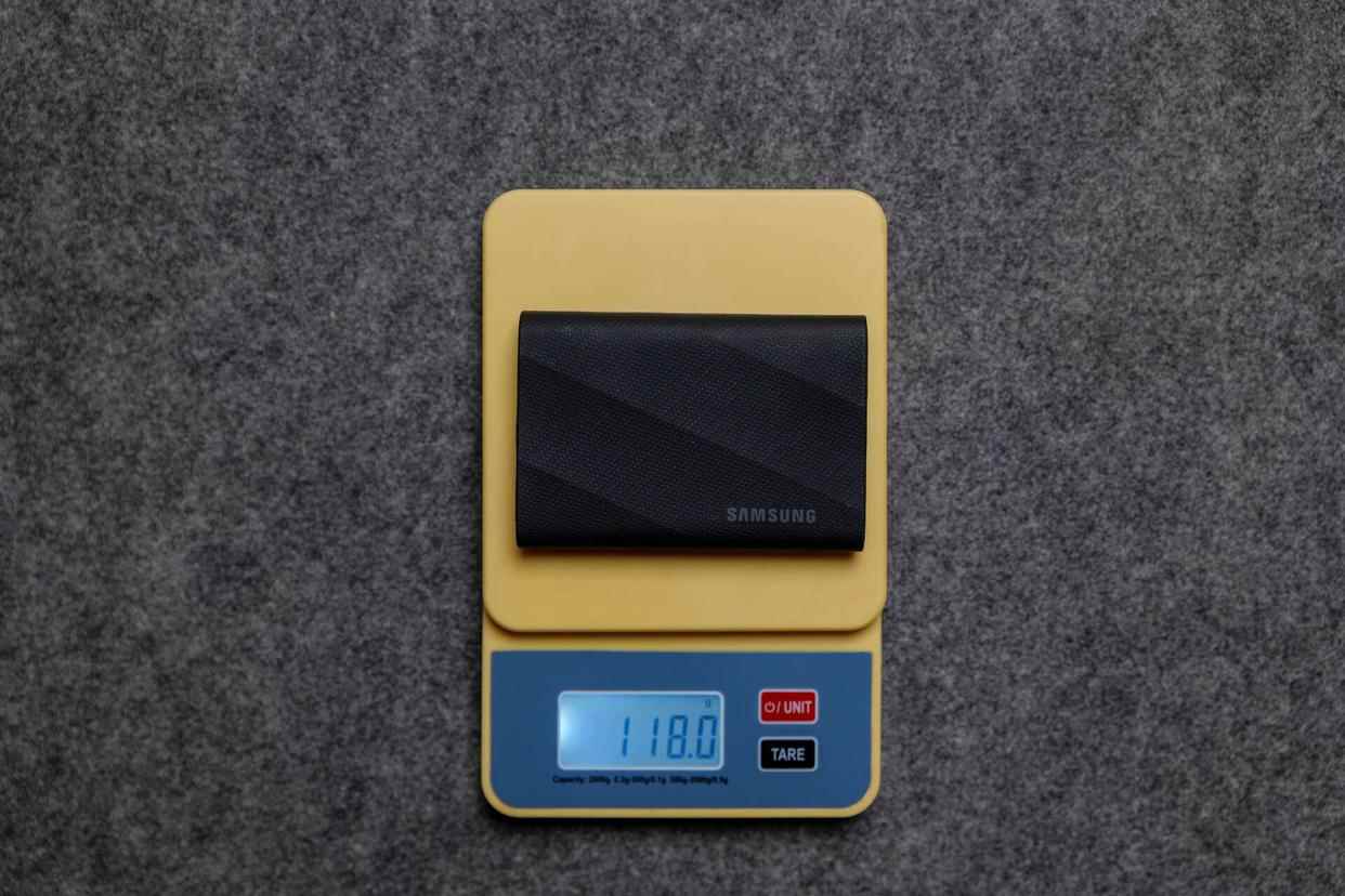 只不过在重量方面,三星t9有点出乎我意料,比看起来要瓷实得多,达到了118g,是致态的两倍还多点儿: