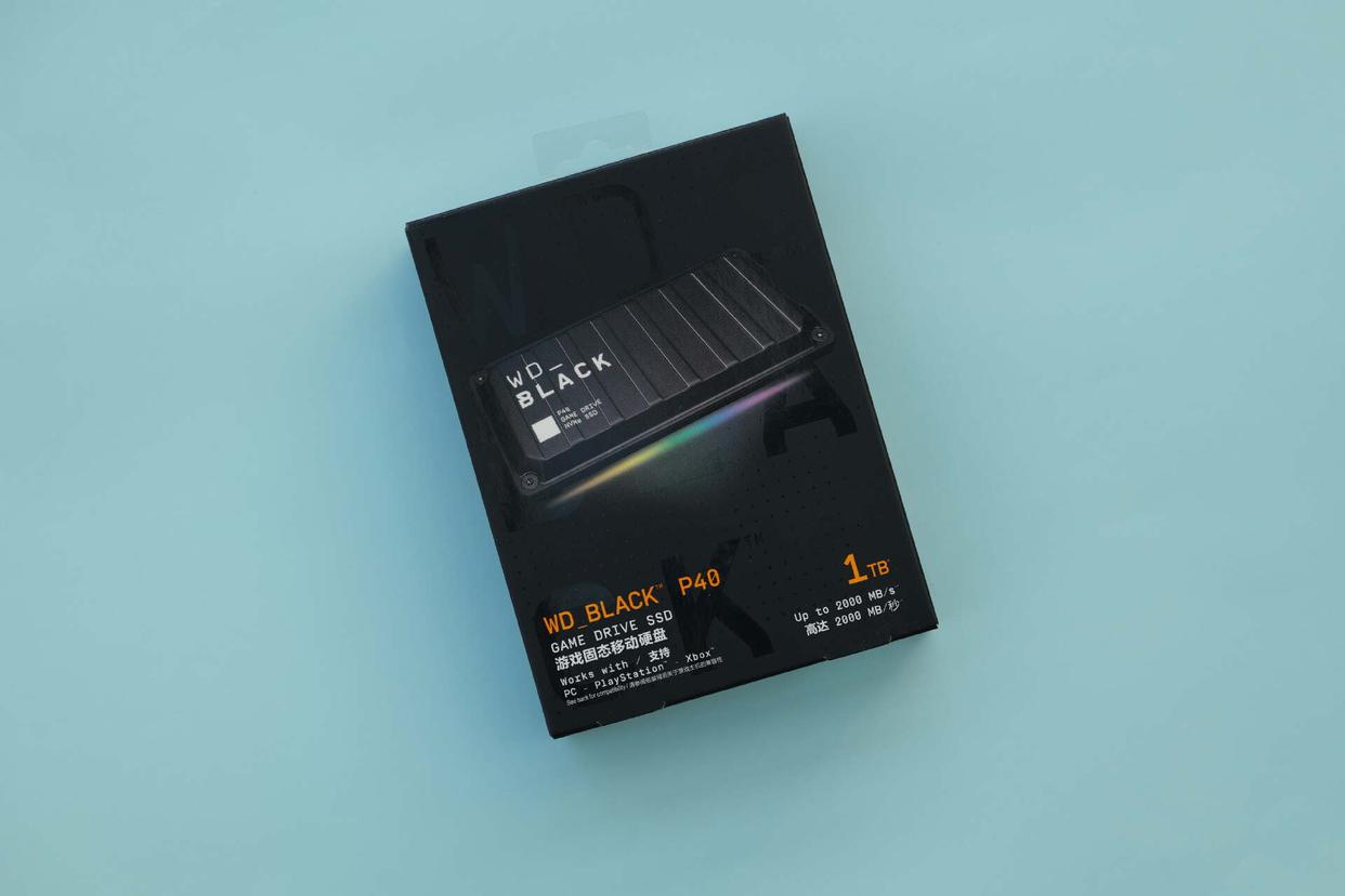 西数的wd_black p40看起来完全就是一个2280 m.2 ssd搭配硬盘盒的造型,外壳为纯金属材质,棱角分明很有手感,通电时还有rgb灯光加持,颜值是没的说。就是尺寸大了点,达到了106.98mm x 50.82mm x 13mm,便携性略逊一筹。